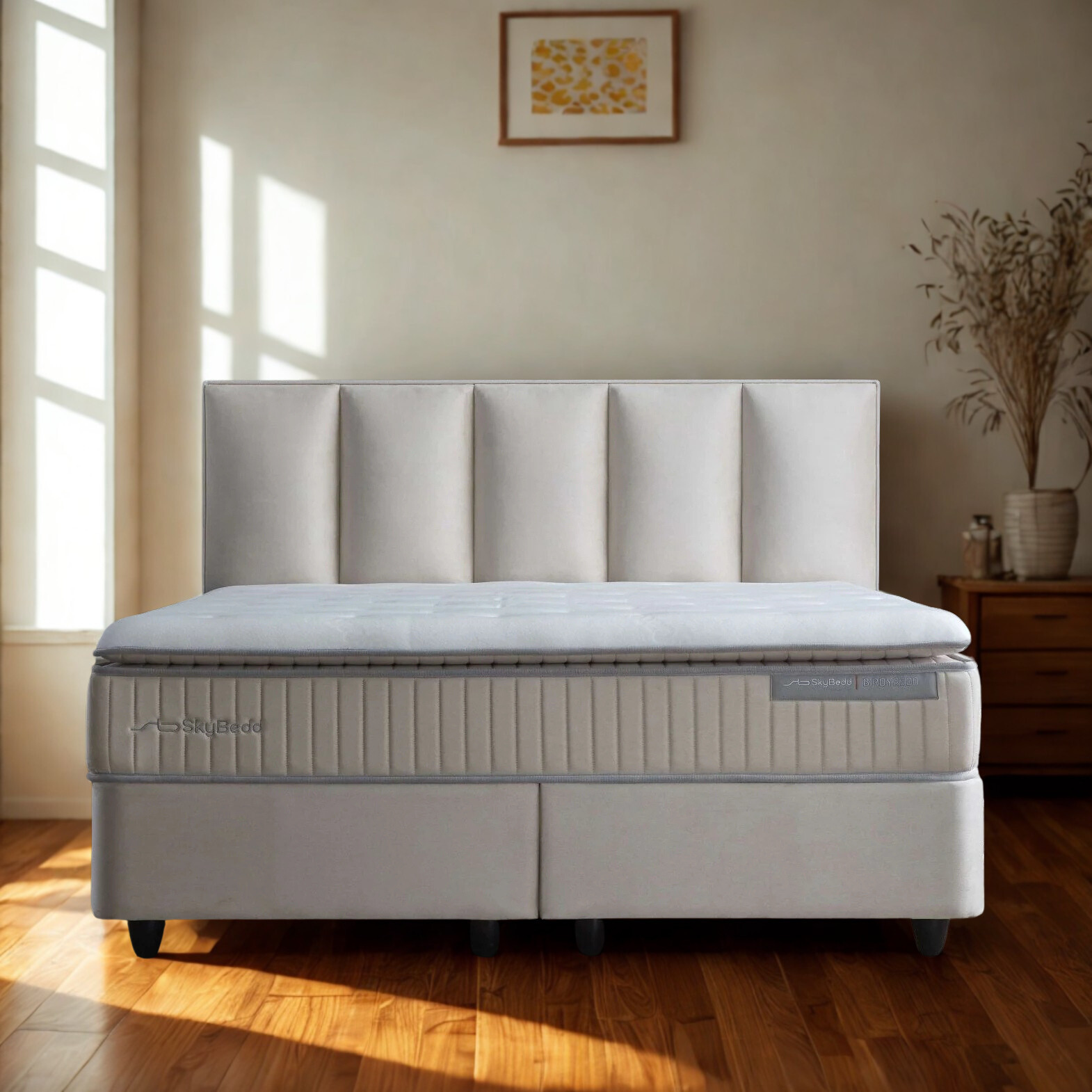 Skybedd Selene storage boxspring – timeless design with generous storage
