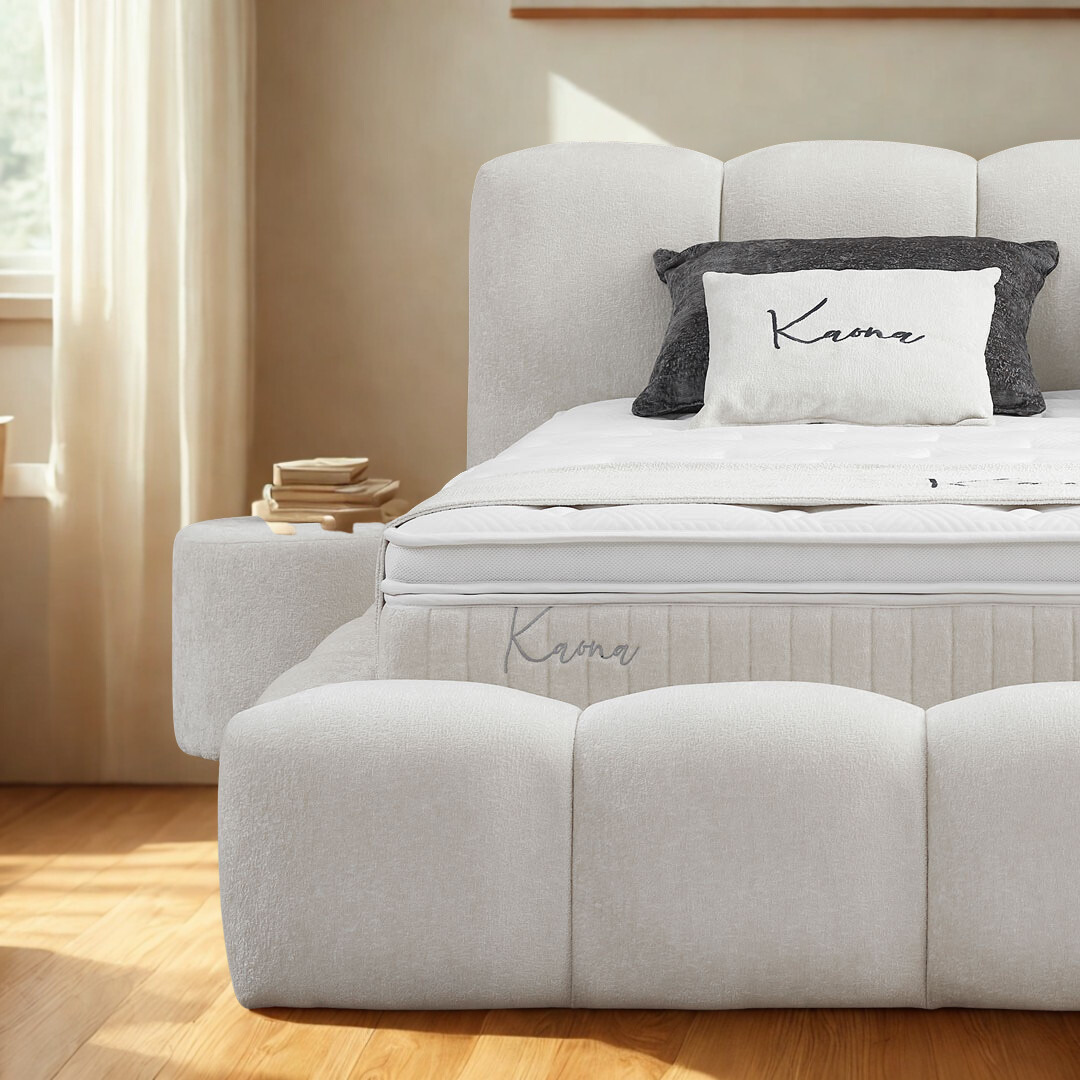 Het opbergbed Kaona straalt warmte en klassieke elegantie uit. Dankzij het verfijnde design en het slimme opbergsysteem combineert dit bed moeiteloos stijl met praktisch gebruiksgemak.